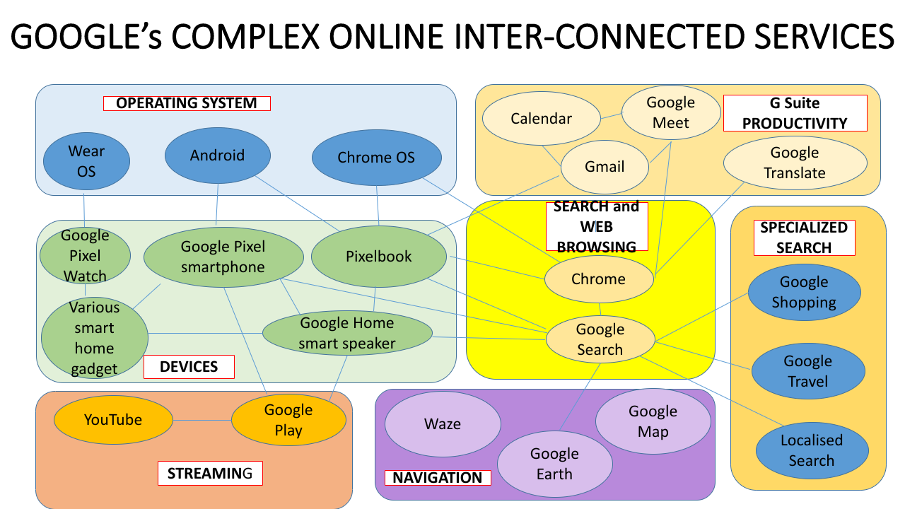 ii) A view of Google ecosystem shall give a better understanding of the wide breadth in span, spectrum and specialities of its activities in the digital marketsphere: