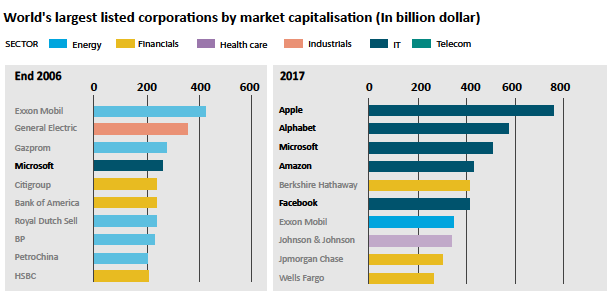 i) Digital technology has already transformed the world economy; the decade leading up to 2019, the largest 100 firms in the world had increased their total market capitalisation by US$12.7 trillion. A third of that increase (US$4.2 trillion) can be said to be accounted for by just seven firms: Facebook, Amazon, Apple, Alphabet, Microsoft (the famous quintet ‘FAAAM’), Alibaba, and Tencent as enabled and enhanced by digital technologies: